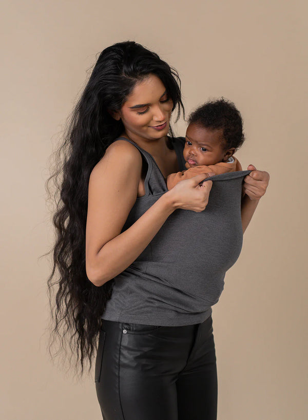 The Soothe Shirt makes babywearing simple with a built-in pouch for hands-free newborn snuggles—no wraps or buckles needed. It also features a nursing bra, mesh panel for airflow, and a pouch extender for growing babies up to 15 lbs.